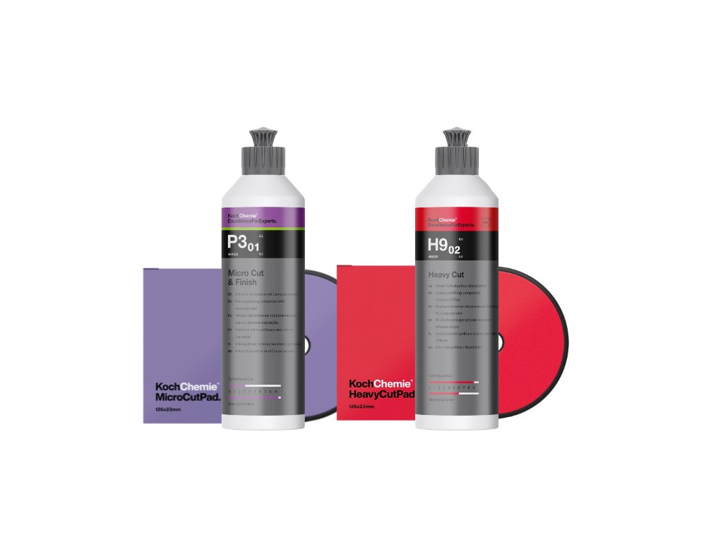 č.404250 - 250 ml Mikro-brusná leštící pasta Koch Micro Cut & Finish P3.01 250 ml - je nejmodernější, finální, leštící, antihologramní pasta s vysokým leskem. Je určena pro strojové leštění na odstranění stop po leštění, hologramech a jemných škrábanců a ostrých částí až do zrnitosti brusného papíru o velikosti 3 000. Je vhodná pro všechny typy laků, včetně těch odolných vůči poškrábání. Díky použití vysoce specializovaných a extrémně homogenních brusných částic se dosáhne na tmavých a podobně citlivých barevných odstínech při extrémních světelných podmínkách brilantní a trvale vysoký lesk. Hologramy a jemné škrábance se mechanicky odstraní. S antihologramní leštěnkou s vysokým leskem Micro Cut M3.02 se velice dobře leští a lze ji beze zbytků odstranit. Obsahuje karnaubský vosk a neprchavé silikony. Okruh použití: Laky osobních automobilů, užitkových vozidel, motocyklů atd. Stupeň brusu 3,2 Stupeň lesku 9,5 Použití: Povrch určený k leštění umyjte a vysušte. Před použitím leštící pastu dobře protřepejte a vyzkoušejte její vhodnost a snášenlivost. Za účelem vytvoření optimálních výsledků leštění doporučujeme při leštění používat náš leštící kotouč Micro Cut Pad fialovýa excentrickou leštičku s nucenou rotací (např. Makita PO5000C, nejvyšší počet otáček). Na vysušené nebo nové lešticí kotouče naneste leštěnku, a to rovnoměrně na celý povrch kotouče. Leštičku nechejte ještě vypnutou a v tenké vrstvě rozetřete leštěnku po laku, následně leštěte mírným tlakem do kříže, dokud se nevytvoří transparentní film, to znamená, dokud se kompletně nerozpadne oxid hlinitý obsažený v leštěnce. Leštící kotouče používané na tento výrobek nepoužívejte pro jiné výrobky. Pro odstranění zbytků leštěnky bez škrábanců a rýh doporučujeme naši profesionální mikrovláknovou utěrku. Chranťe před mrazem a nadměrným teplem. Nepoužívejte na horké povrchy.