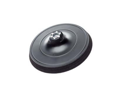 Se suchým zipem, tento upínací talíř výrazně usnadňuje vedení leštičky (lehká šikmá nastavení se vyrovnají a stroj již "netancuje" na povrchu). Díky pevnému provedení (talíř, kaučuk, měkká pěna, kaučuk, suchý zip) je zaručeno pevné spojení mezi kaučukem a plochou suchého zipu.